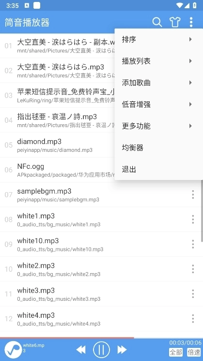 简音兼容多种音频格式,不过一些极冷门的格式(比如部分无损压缩格式)或许无法正常播放,所以建议优先选用常见格式。