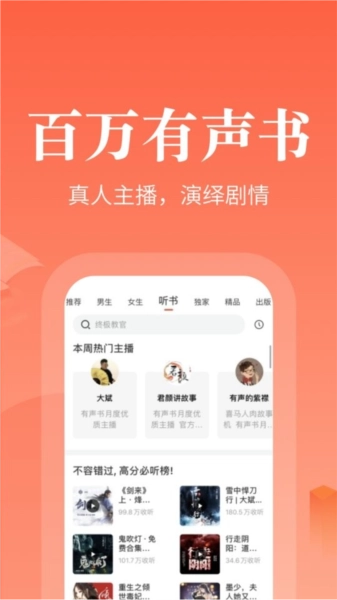 5、我们在全网范围内精心搜罗当下热门小说,同时收录了数量庞大的正版小说资源,让用户能够尽情畅快阅读。平台还设有多种内容分类,无论你喜好哪种类型,总能找到适合自己的。此外,更贴心配备一键听书功能,帮助你解放双手,轻松享受阅读时光。