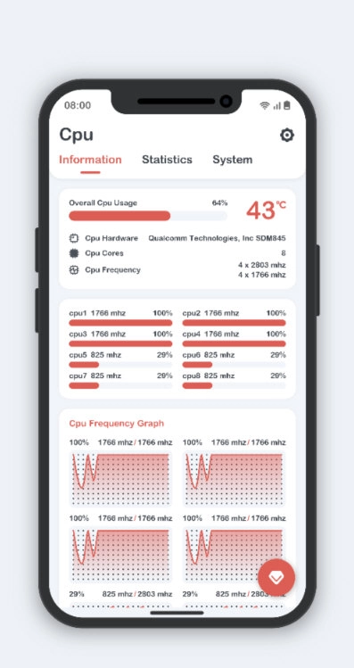 CpuMonitor是安卓平台上一款界面精致且功能专业强大的CPU监测工具,专为手机硬件爱好者打造,能实时呈现CPU的各项负载数据,像温度、运行频率以及使用率等关键信息。它还具备桌面小组件功能,方便你随时查看CPU状态,同时支持高温报警设置——当你玩游戏或运行高负载应用导致手机温度超标时,会及时发出提醒,让你能迅速处理相关应用。最值得一提的是,CpuMonitor可以对CPU负载的历史数据展开深度分析,你不仅能了解过去一段时间系统资源的整体使用趋势,还能清晰掌握各个应用的具体资源占用情况。如果你希望手机硬件性能监控能像电脑端鲁大师那样便捷直观,这款应用无疑是你的理想选择。