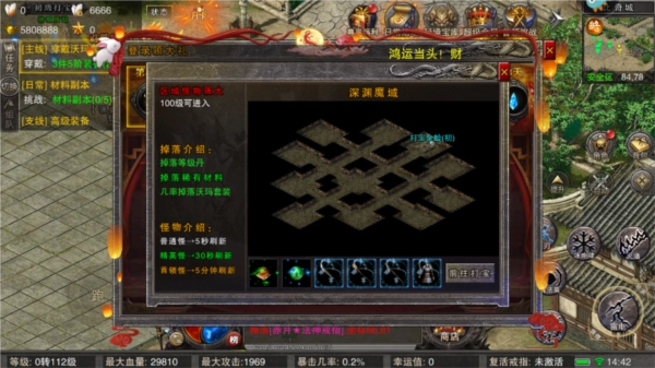 5、游戏内设有大量副本可供挑战,若想快速提升等级,就需要前往这些副本进行挑战。