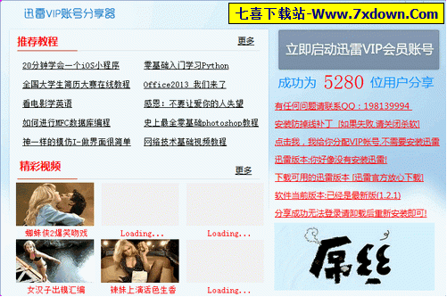 阿伦迅雷vip分享器是一款可以支持所有迅雷版本,支持一键登录(需要安装支持的迅雷版本,该版本在软件中可下载到),加入"推荐教程" 和 “精彩视频” 供大家学习 欣赏,集成迅雷防掉线补丁,防止帐号被人顶下线。对没有安装迅雷的用户,免费提供会员帐号和密码。