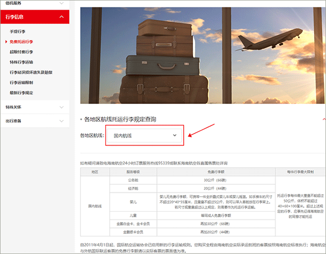 海南航空怎么看行李额