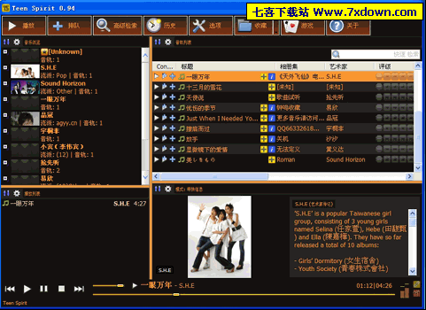 Teen Spirit(可显示歌手简介/照片的MP3播放器)V0.94汉化绿色版其他版本