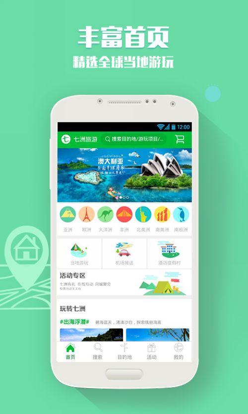 七洲自由行安卓是一款专注于全球目的地旅游预订服务平台,为全球的旅友提供特色的旅游服务预定,精选包车、导游、机场接送、潜水、滑雪、门票、特色住宿等旅游在线预订服务,通过七洲网电子商务智慧旅游平台进行便利的个性化定制和重组。