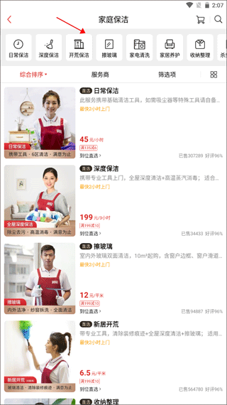 2、选择你要保洁的类型,如家电清洗、家具养护、收纳整理等。
