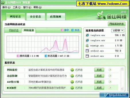 欢迎试用!金山网镖2010是金山互联网安全子公司历经5年重新架构新引擎,基于全新底层架构实现的新版个人防火墙产品。为了帮助广大个人计算机用户更好的抵御日新月异的互联网安全威胁。