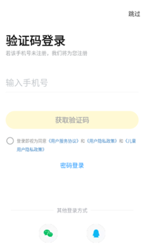 1、进入软件界面,可先进行登录操作,若不想登录,也能够选择跳过。