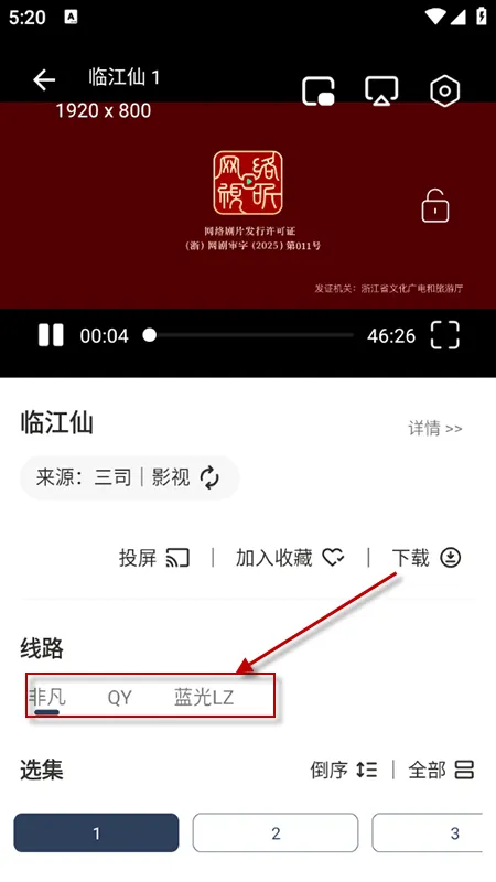 2、多线路切换:内置10+播放源,卡顿自动切换,0.5秒内完成线路适配。