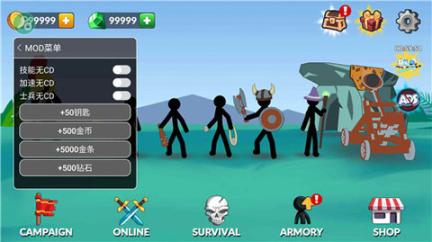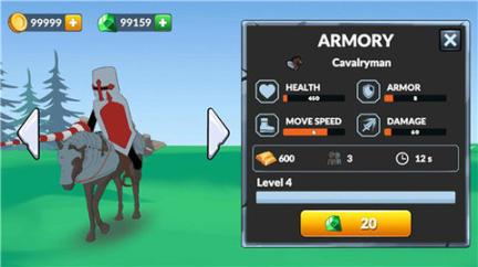2、在游戏中,玩家将亲临激烈刺激的战场,指挥你的火柴人战士们战斗。游戏中有各种火柴人士兵可供训练