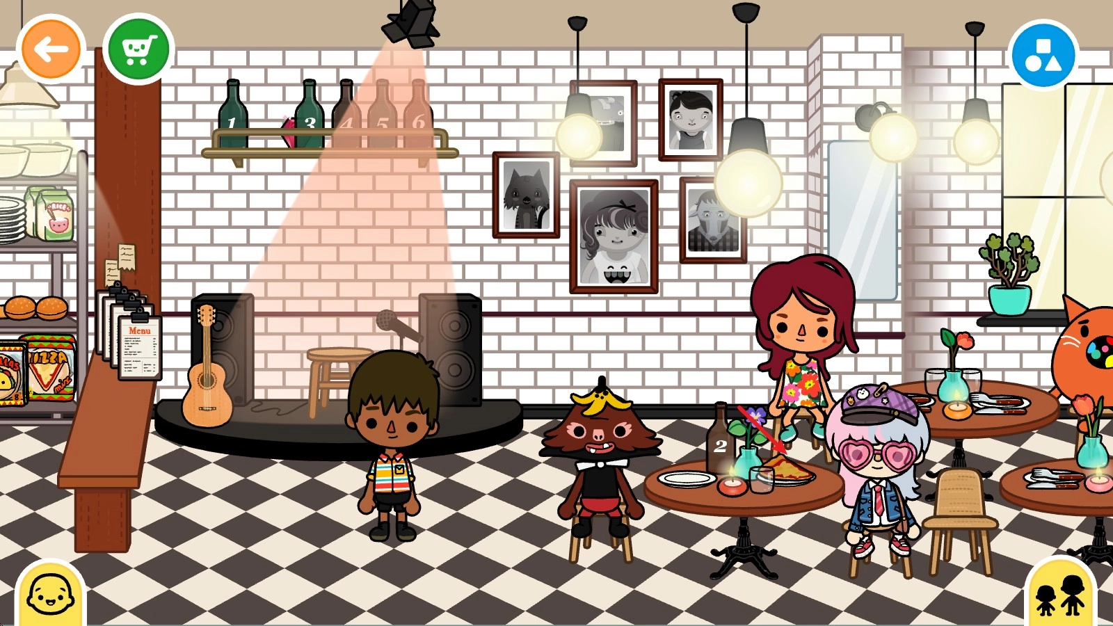 2、举个例子,当我们走进一家商店后,点击右下角的黄色小人图标,就能在场景里添加自己预先创建好的角色。