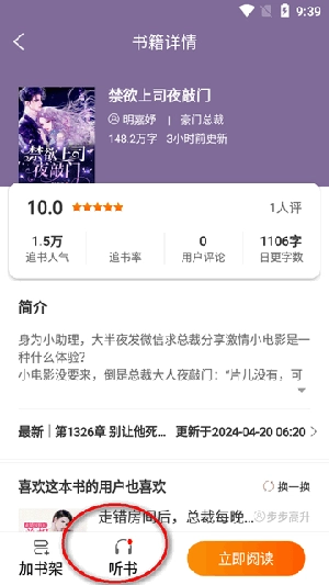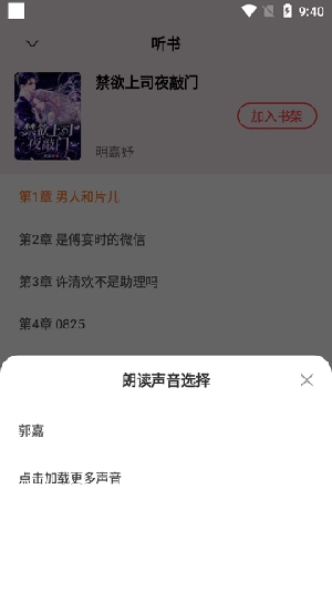 5、只需点击正中间的按钮,就能开启听书之旅,同时还能挑选喜欢的朗读声音。