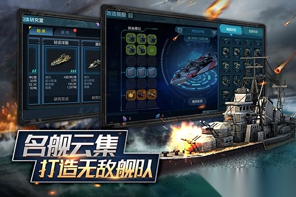 5、百余种强大武器,打造个性战舰,通过研发、升级武器打造强大舰队,最终获取挑战胜利。