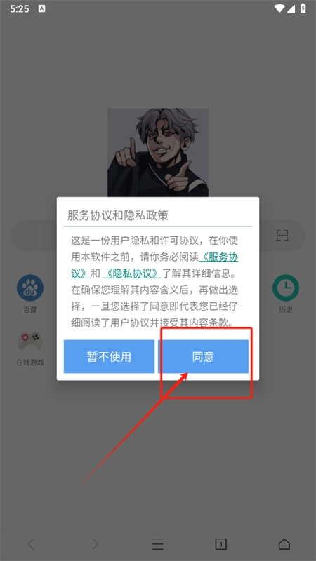 1、通过官方下载安装坤坤浏览器、阅读并同意用户协议后即可启动应用;