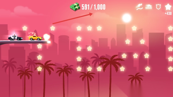 2、在赛道躲警车,吃星星,收集绿色赏金包,凑够1000赏金。