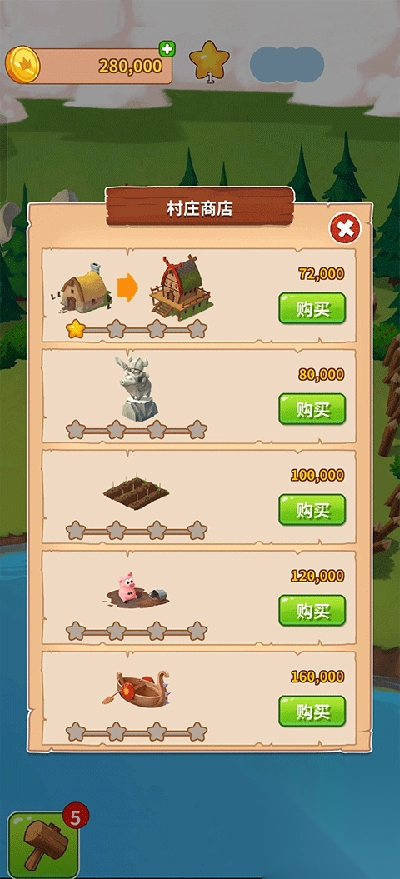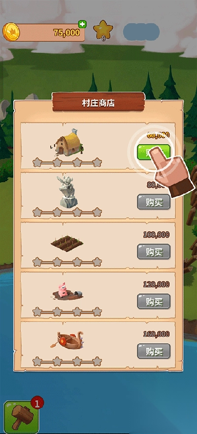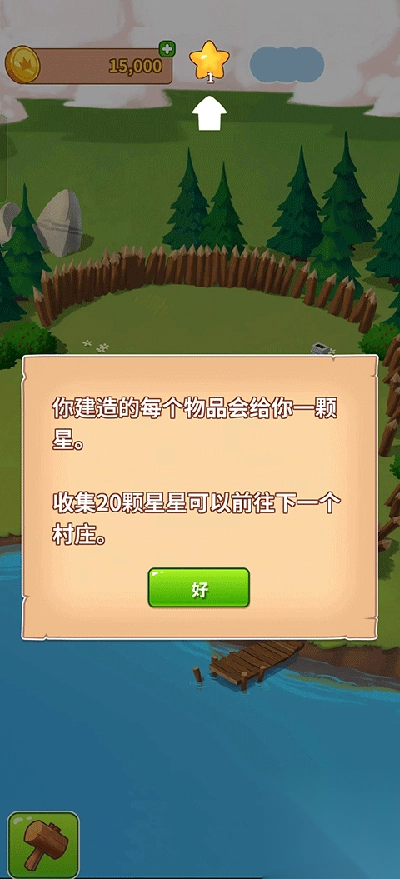 3、每当你成功建造一个物品,就会获得星星,当收集到20颗星星时,便能够前往下一个村庄。