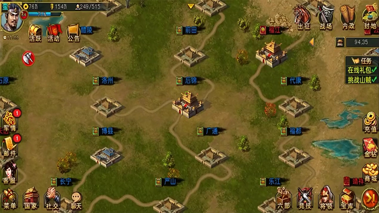 2、游民无法驻防本国城池;游民无法驻防本国玩家封地;游民无法享有国家科技加成