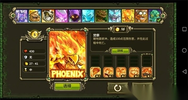 这只会飞的火鸡要是技能没点满,伤害就比较有限。然而,当你坚持不懈将其练至满级后,它就仿佛脱胎换骨一般,满屏幕乱飞的导弹让人目不暇接。火环是个相当不错的群体伤害(AOE)技能,它那神风特攻队专属技能,一头撞下去伤害极高,而且复活速度也快。地雷则是守家的不二之选。总的来说,这是个偏向防守的英雄,在打无尽模式时表现出色。