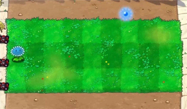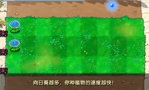 2、在草地上种植向日葵,寒冰版本的向日葵是蓝色的脸。