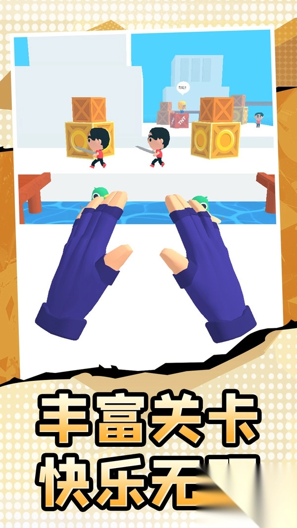 2、利用场景道具,像可破坏箱子,配合手势攻击,砸中敌人造成额外伤害。