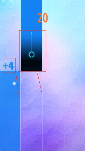 2. 屏幕正中央是不断下落的音符方块,玩家需要依据提示,在准确的时间进行点击或者滑动操作,要注意避免触碰到白色区域,不然会影响得分。