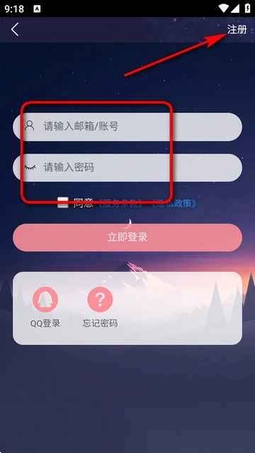 3. 使用前需登录账号,支持QQ或邮箱快速注册