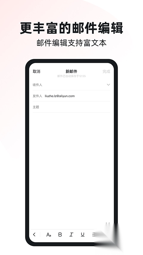 阿里邮箱(阿里云邮箱app)使用体验很棒。界面简洁直观,操作便捷,能快速找到所需功能。邮件收发速度快,稳定性高,极少出现卡顿或延迟。而且它与阿里生态系统有良好融合,方便关联其他业务。无论是个人还是办公使用,都是高效且实用的邮箱工具。