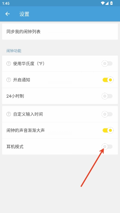 3、若你不想通过玩游戏来关闭闹钟,可进入闹钟设置页面,开启“不玩游戏直接关闭闹钟”功能。此后,闹钟响起时,无需玩游戏,点击画面下方的“关闭”按钮,就能直接关闭闹钟。