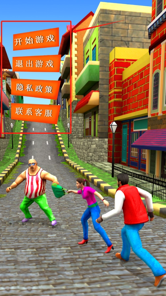 1、点红框里开始游戏按钮,就能进入色彩缤纷街道的跑酷冒险啦。