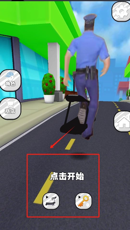 3、点击点击开始,操控蓝衣警察在鲜艳城市街道上奔跑起来。