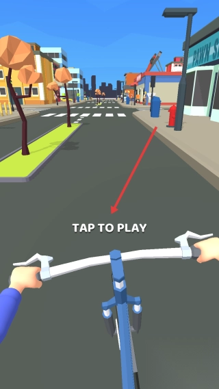 1、点击【TAP TO PLAY】开始,在城市道路骑行,熟悉虚拟操控(如点击加速、转向),沿街道前行,留意路标与建筑,适应骑行节奏。