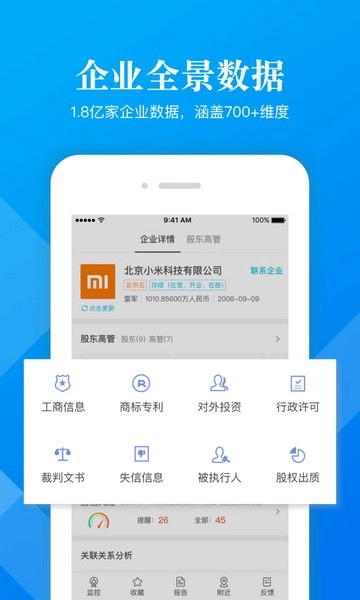 帮助商务对接,把握竞业发展动态,查询上下游合作企业信息;