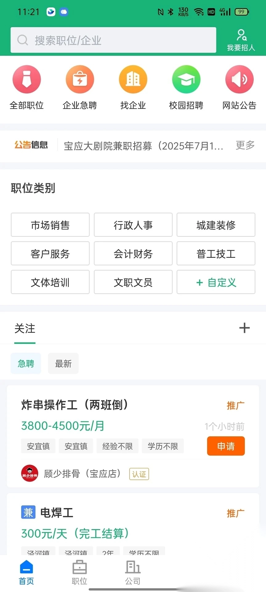 1、精准匹配求职意向,推荐本地优质岗位,为求职者显著提升就业机会,推动职业发展。 2、发布企业招聘信息,助力公司吸引众多优秀人才,切实解决各类用工需求难题。