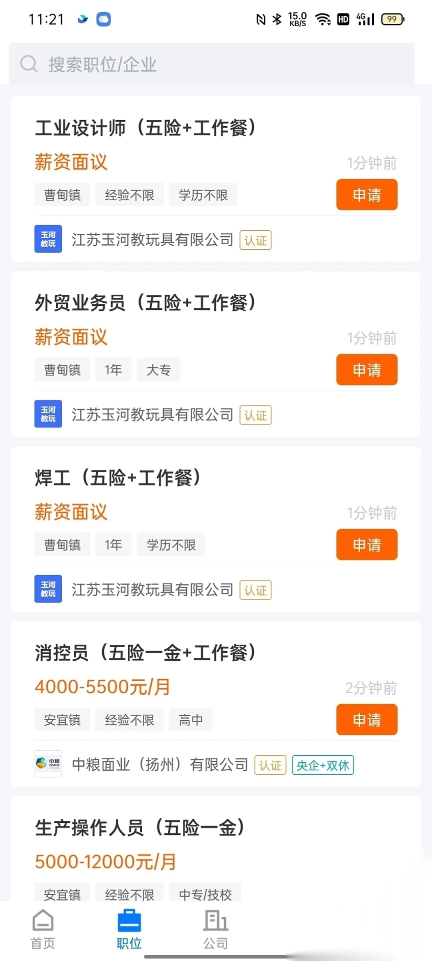 2、在职位中推荐了非常多优秀的职位,用户可以随时快速的进行申请;