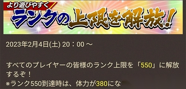 改版开放到550等有380体力