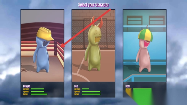 2、在角色选择页,选“Dargon”(戴黄帽角色),确认后进入战斗,用其技能对战敌人。