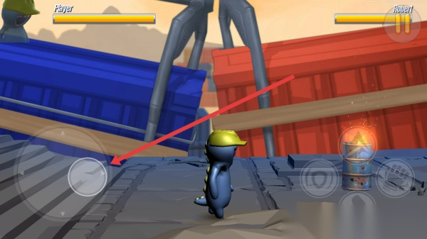 3、战斗中,用左侧虚拟摇杆(红箭头指向)移动角色,躲避攻击,寻找时机,出击击败对手。