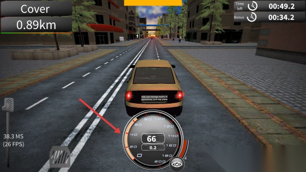 3、驾驶汽车,关注车速表,沿道路行驶完成【Cover 0.89km】任务。