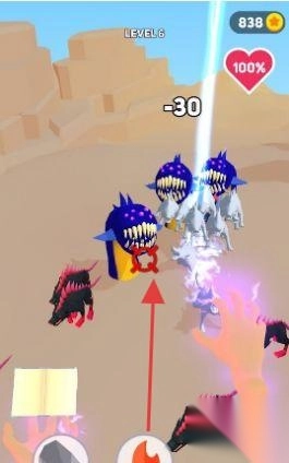 1、在LEVEL6关卡,通过手势释放技能,攻击不同场景的怪物。