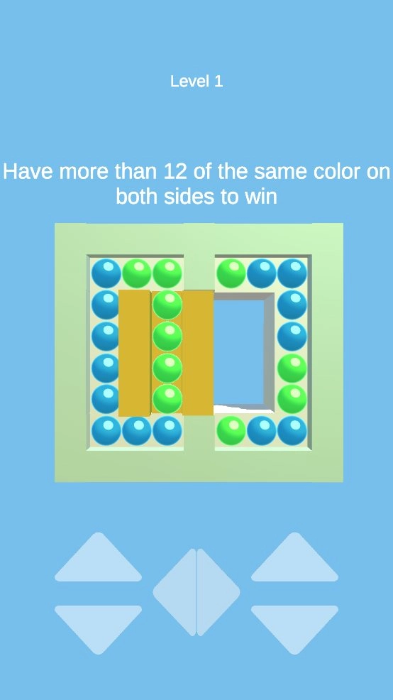 1这是一款游戏,玩家通过挪动珠子,若能使其中一侧的珠子出现超过12个颜色相同的情况,即为获胜。
