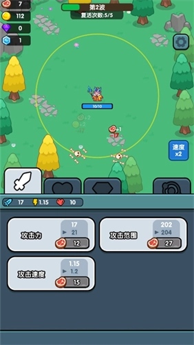 2、通过点击战斗可以使用食物对角色的属性进行升级,角色会自动攻击范围内的目标,玩家在成功完成对应目标后即可获取奖励;