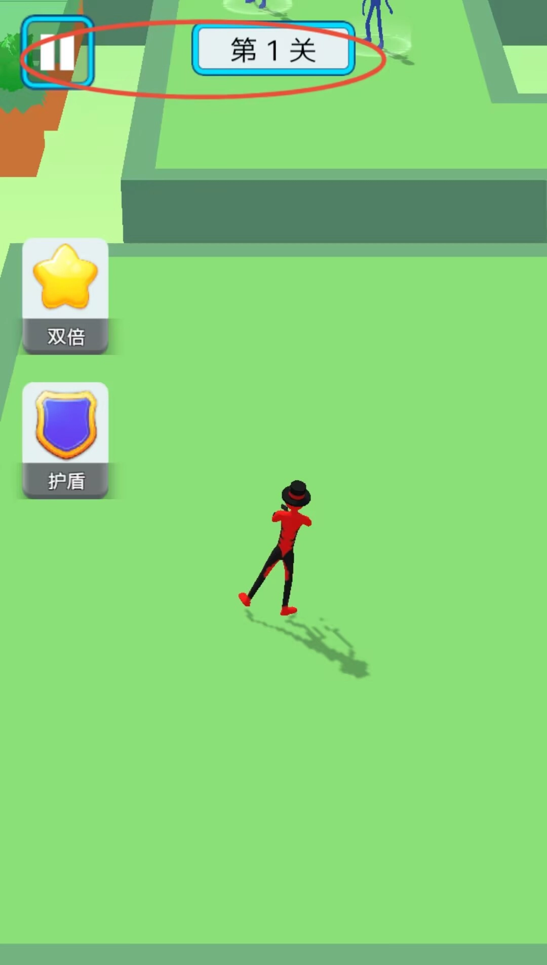 2、战斗界面顶部区域显示当前关卡进度及暂停功能,左侧为特殊技能触发区,长按屏幕可操控角色移动。