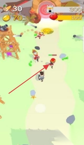 1. 在关卡场景中,操控角色去追击带有红框标识的敌人,通过使用武器进行攻击,从而获取金币等奖励。