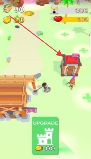 3、走近标有【UPGRADE】提示的建筑,花费金币进行升级,以此提高防御能力,增强自身实力。