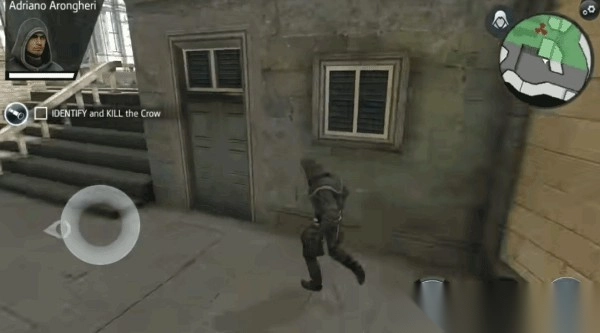 1这款游戏中设置了两种控制模式。一种是类似于PC版的点击行走模式,另一种则是更适合手机操作的双摇杆模式。鉴于移动端的特点,游戏里像攀爬、跳跃这类动作都进行了简化,玩家只要靠近障碍物,对应的动作就会自动完成。并且刺杀操作也变得更加直观,玩家点击敌人头部上方的骷髅图标,即可完成刺杀。