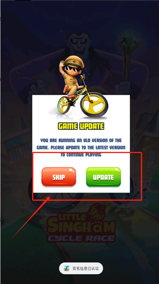 1、点击绿色UPDATE更新游戏,或者点红色SKIP跳过,但建议更新以继续游戏。