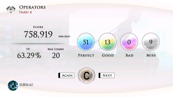 6、在曲目结束时,根据你的连击次数和失误次数,得分将决定你最终的表现;