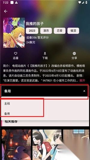 4. 如果遇到播放失败的问题,在详情页面切换主线和备用线路,就可以恢复正常观看。