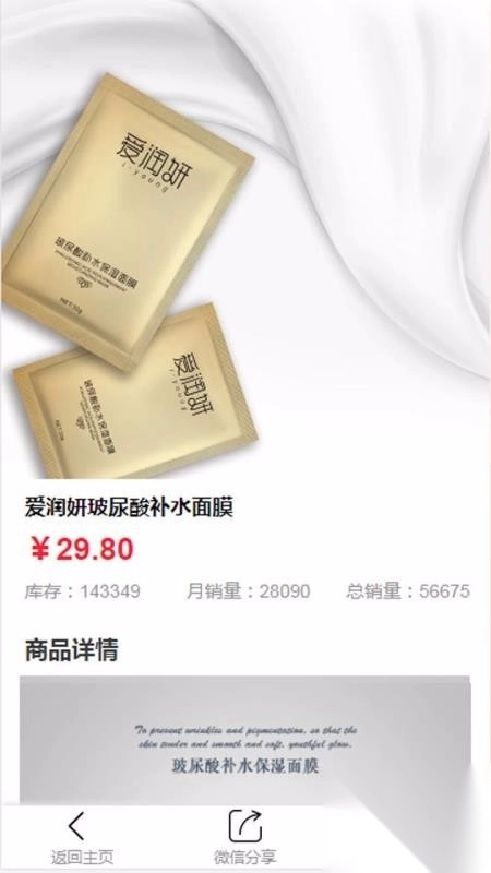 爱润妍APP如同一家线上旗舰店,它的核心功能是为用户提供爱润妍的各类商品。在这个平台上,爱润妍的众多商品琳琅满目,其中又以玻尿酸相关产品为主打。用户一旦选择使用这款应用,就能深入了解更多详细内容,像爱润妍的玻尿酸精华、各类洁面片,还有丰富多样的眼贴等都包含在内。