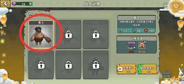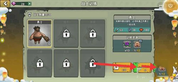2、在战士页面里,点右侧的【训练】。