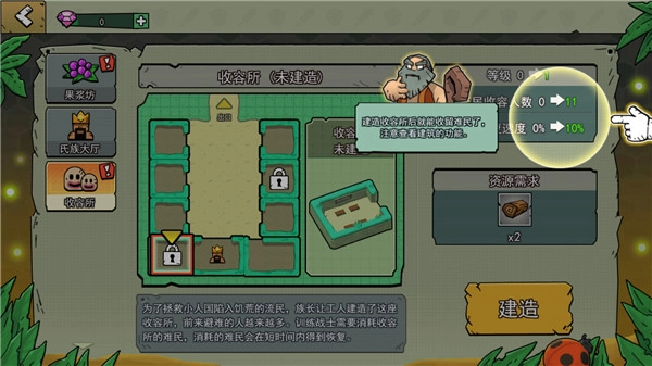 3、游戏剧情后,进行建造收容所。